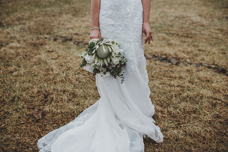 Val: White satin, a little bit of lace at the neck, Very simple, classical dress.
